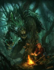 The Hidebehind is a nocturnal creature that lurks in the woods to capture unsuspecting prey...namely, humans who wander into the woods. It is named for the fact it hides behind trees. It is generally agreed to be a dark colored creature, but details of it's appearance vary.